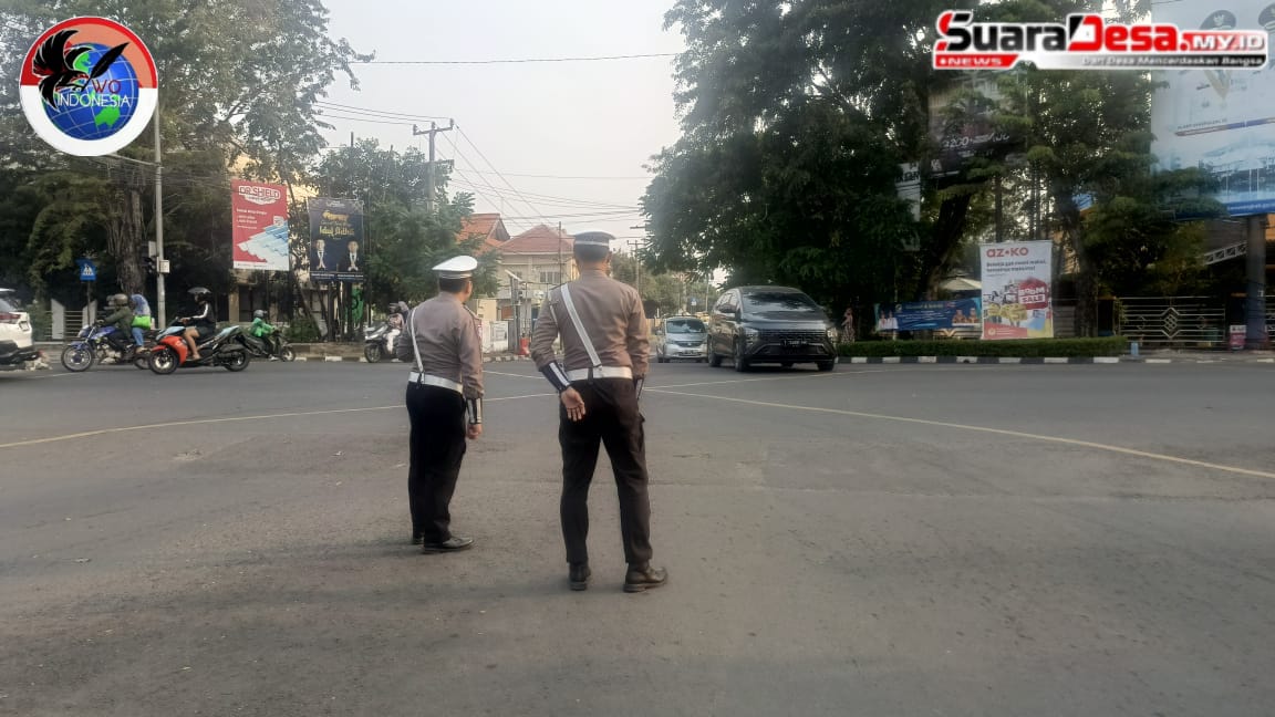 Satlantas Polres Karawang, tingkatkan pengaturan arus lalu lintas guna mengantisipasi terjadinya laka lantas maupun kepadatan arus kendaraan di jalan baypas tepatnya di lampu merah Pemda karawang, sabtu sore (19/07/2025).